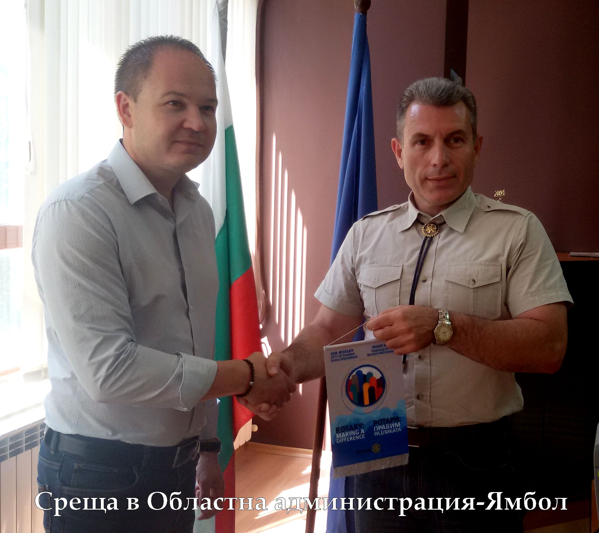 На 25-ти юли се проведоха официалните срещи на Дистрикт гуверньора и Борда на клуба с Областния управител на Ямбол г-н Димитър Иванов заместник-кмета на Ощина Ямбол г-жа Илиана Бицова. На срещите представителите на държавната и местната власт дадоха висока оценка на дейността на РК-Ямбол и на традиционно доброто взаимодействие между институциите и клуба при изпълнение на ротарианските инициативи, които са насочени към нуждите на гражданите и към популяризиране на историческите и културни забележителности в града и региона. Те изразиха своята подкрепа към бъдещите дейности на клуба и в частност на проекта за „Изграждане на градски турбийон в Ямбол”.