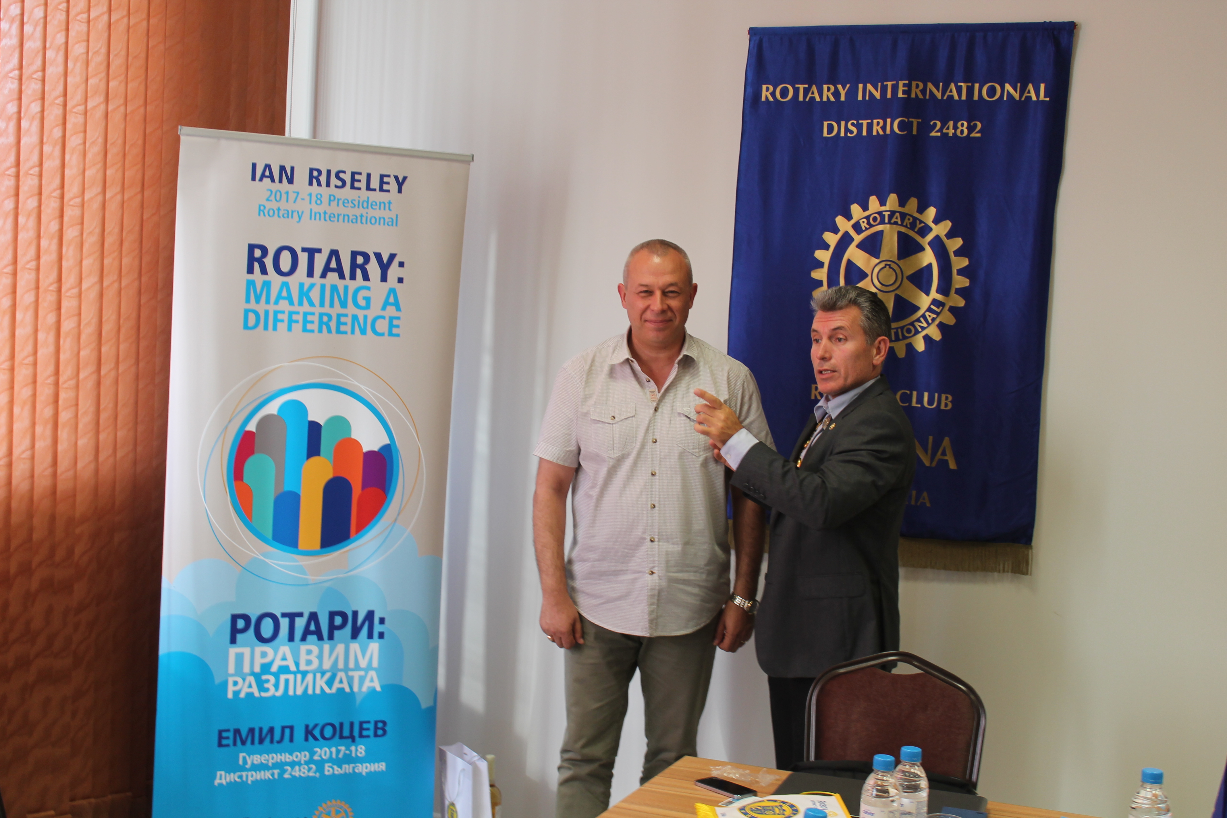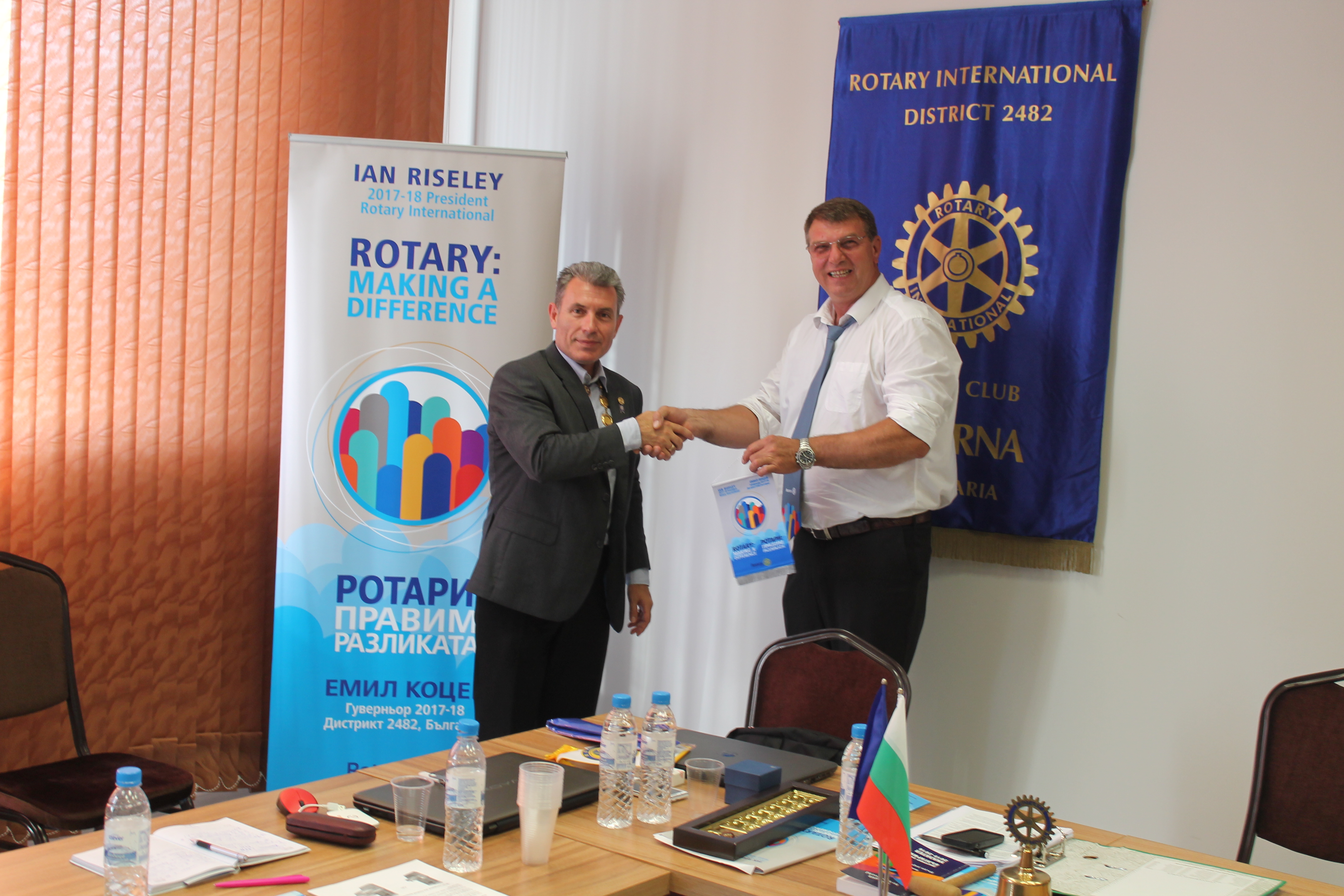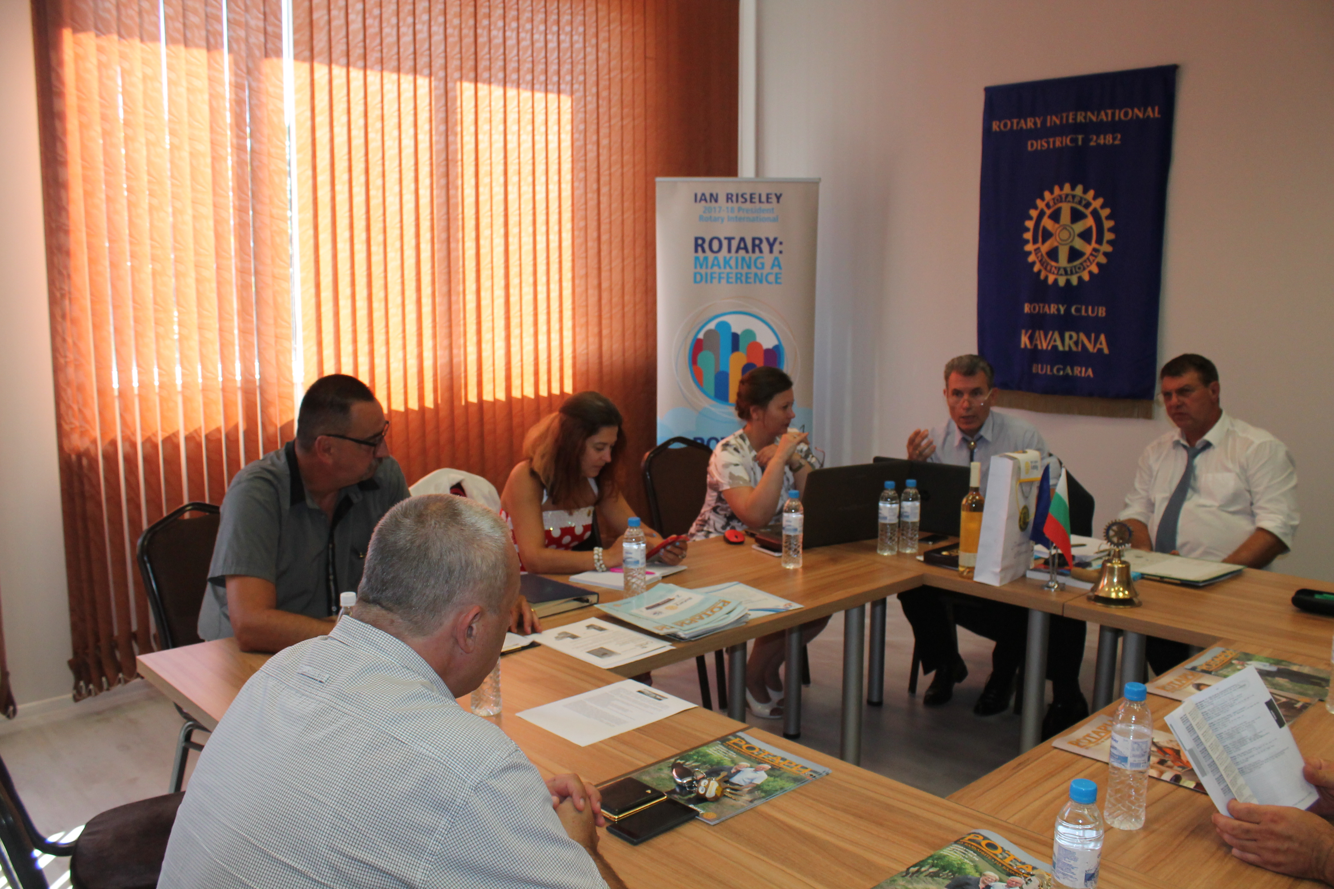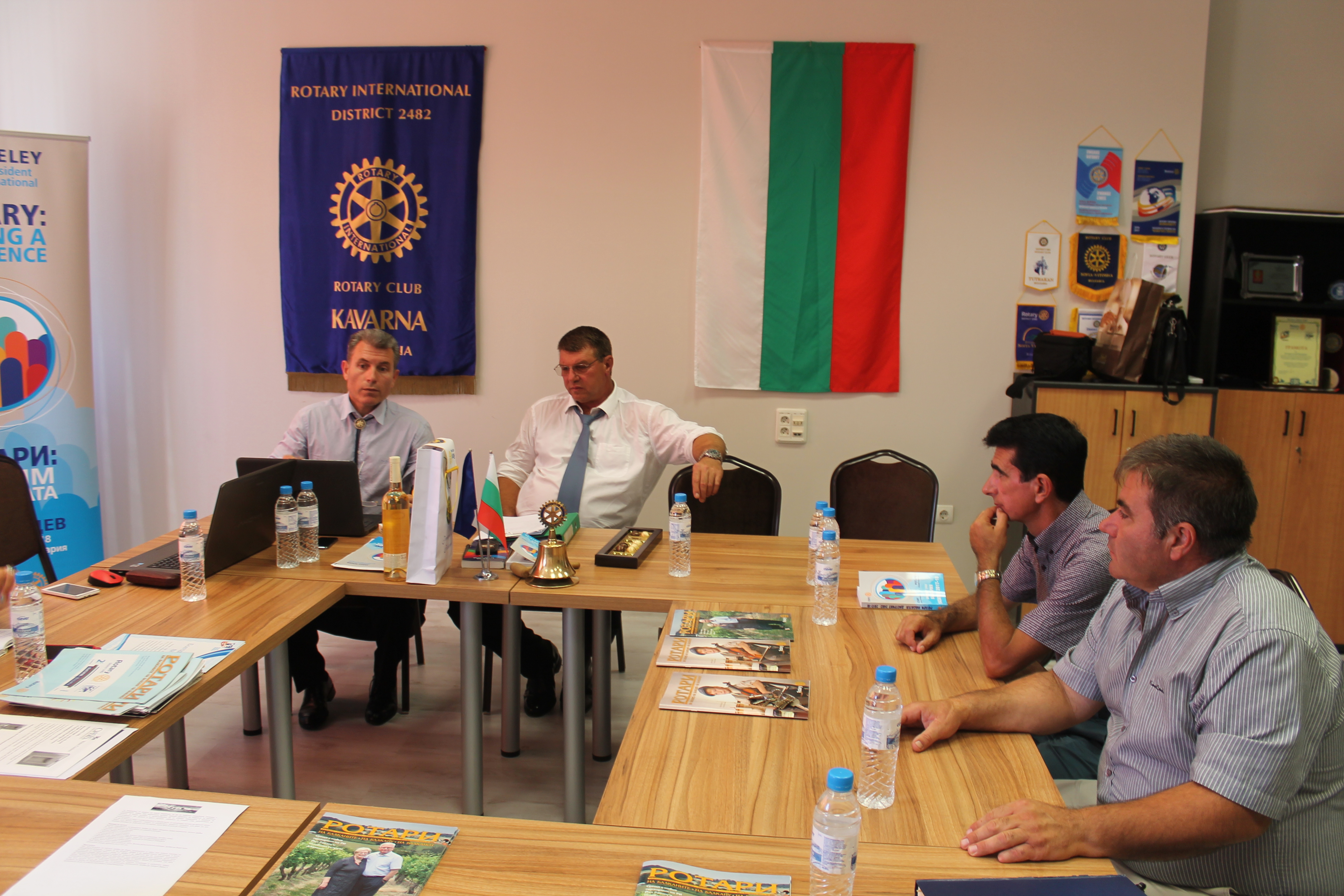 Повод за срещата бе новата ротарианска година , идеите и проектите,които стоят пред организацията.В приятелски дух и дискусия преминаха и разговорите с борда на РК Каварна и членовете на клуба.Обмениха се идеи за сътрудничество в реализирането на проекти насочени в зоните на фокус на Фондация Ротари в полза на местната общност.