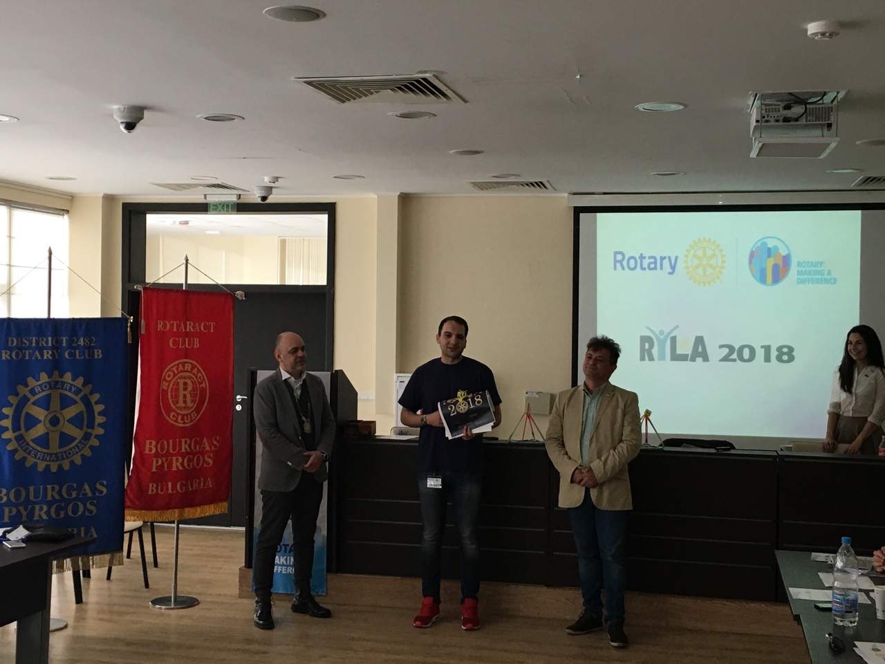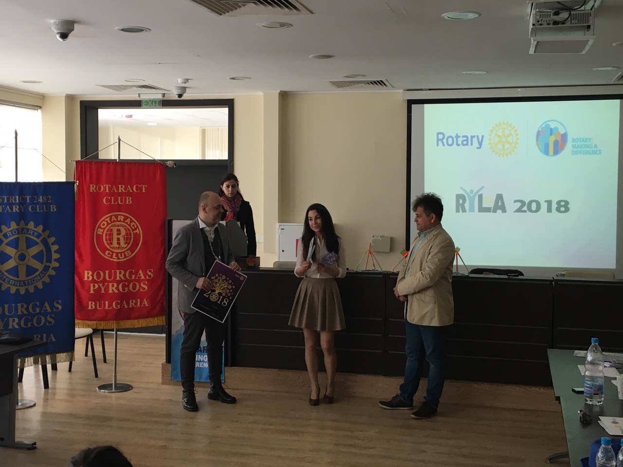 Дистрикт 2482 и Ротари Клуб Бургас-Пиргос организират за осма година RYLA /Rotary Youth Leadership Award/ семинар, който се проведе от 30.03.2018 до 01.04.2018 в гр. Бургас, Морско казино (в морска градина) и хотел Луксор.
