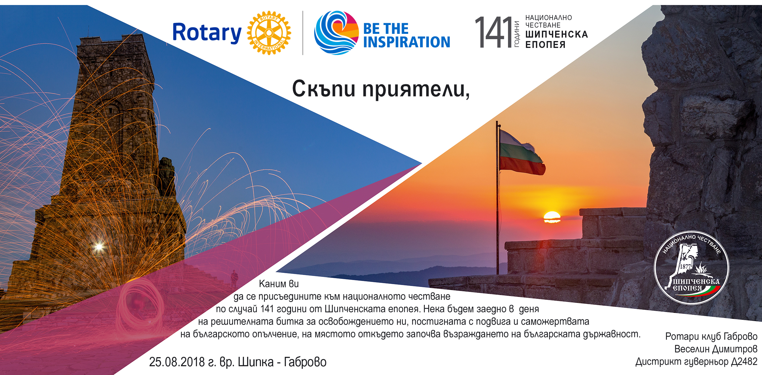 За поредна година ние от Ротари клуб – Габрово организираме туристически походи като част от Национално честване „Шипченска епопея“. През настоящата година походът ще бъде в кулминационния за тържествата 25 август и ще започне рано сутринта от три изходни позиции – Соколски манастир, м. Узана и гр. Шипка. И трите лъча на похода не изискват сериозна физическа подготовка и са приятни за вървене.