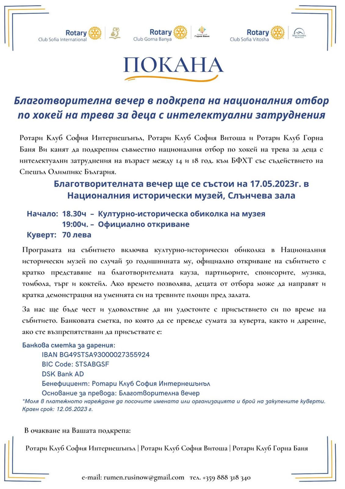 Дата: 17/05/2023Ротари Kлуб София Интернешънъл, Ротари Клуб София Витоша и Ротари Клуб