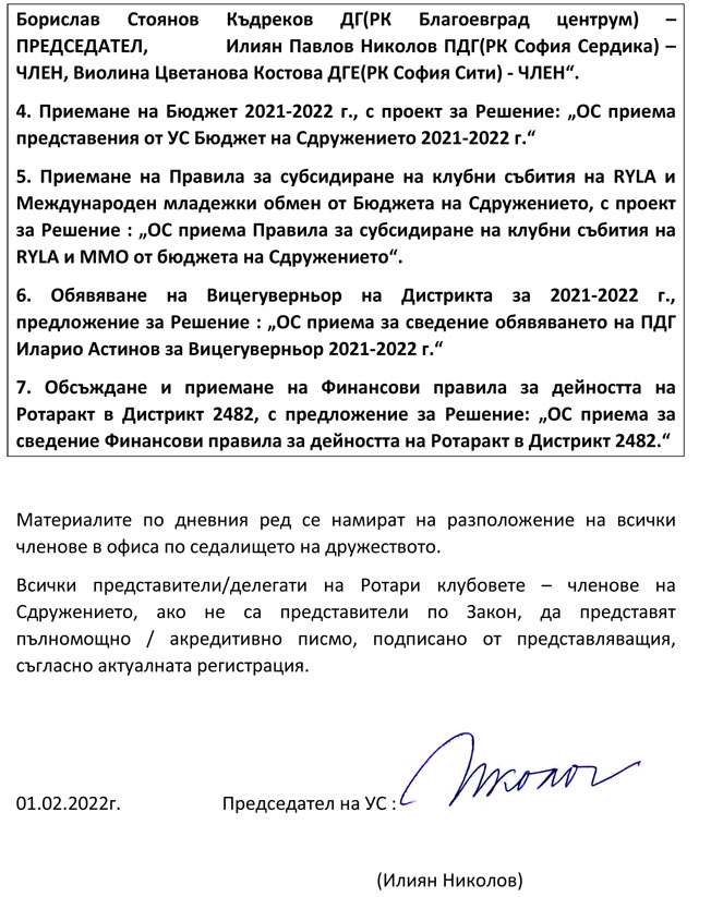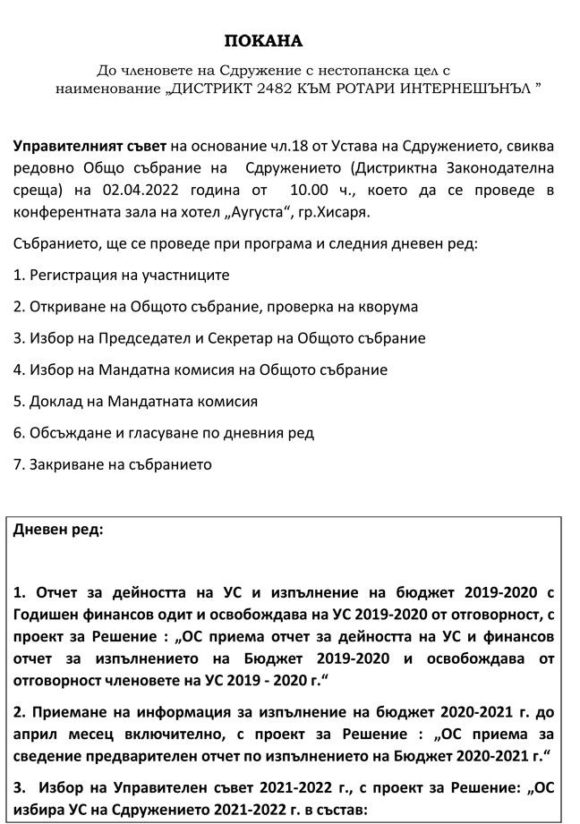 ОБЩО СЪБРАНИЕ 2021 проведено на 02 април 2022 Информацията е публикувана на 13 март 2022 г,, заедно с файловете по-долу