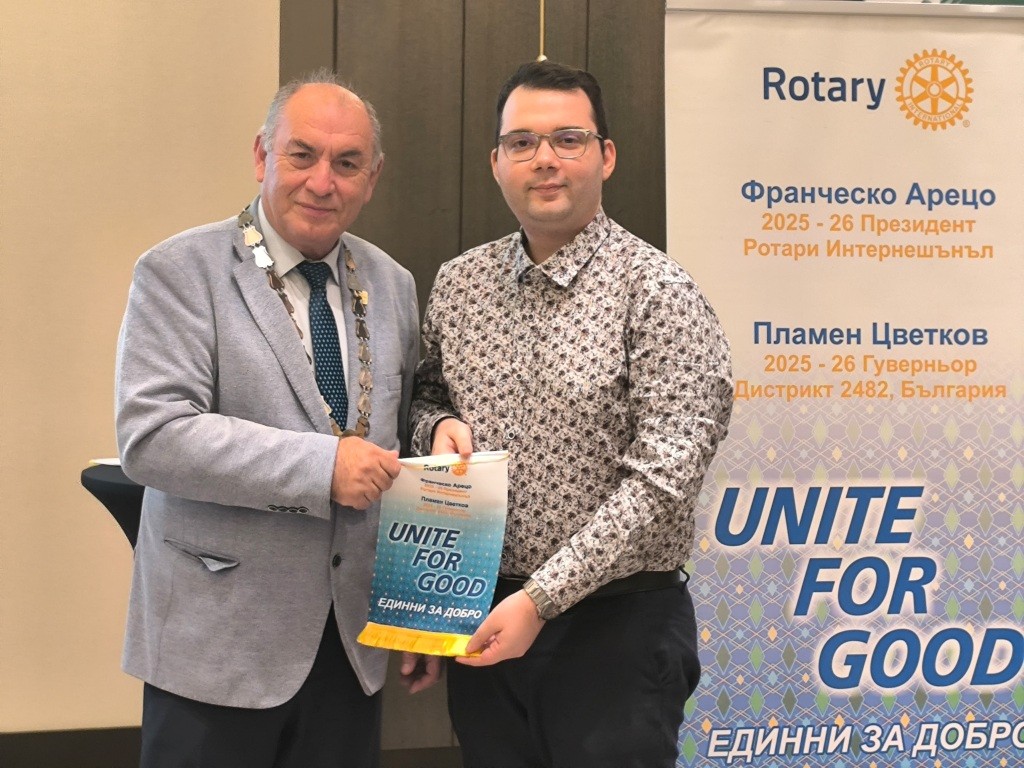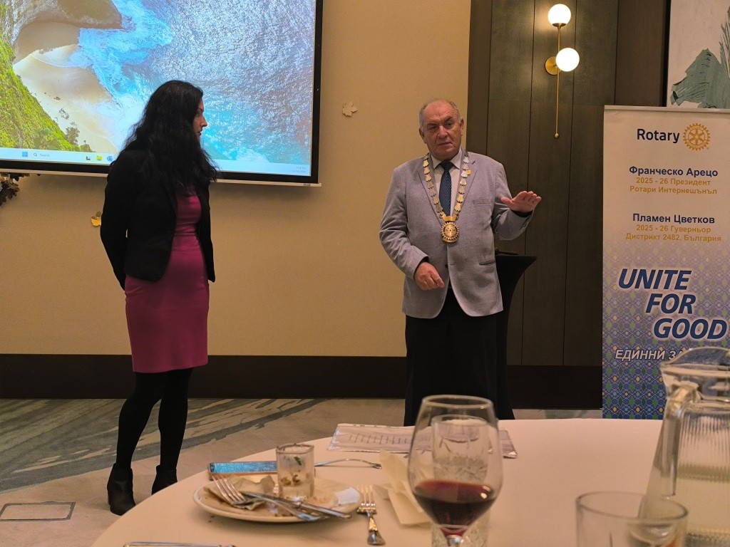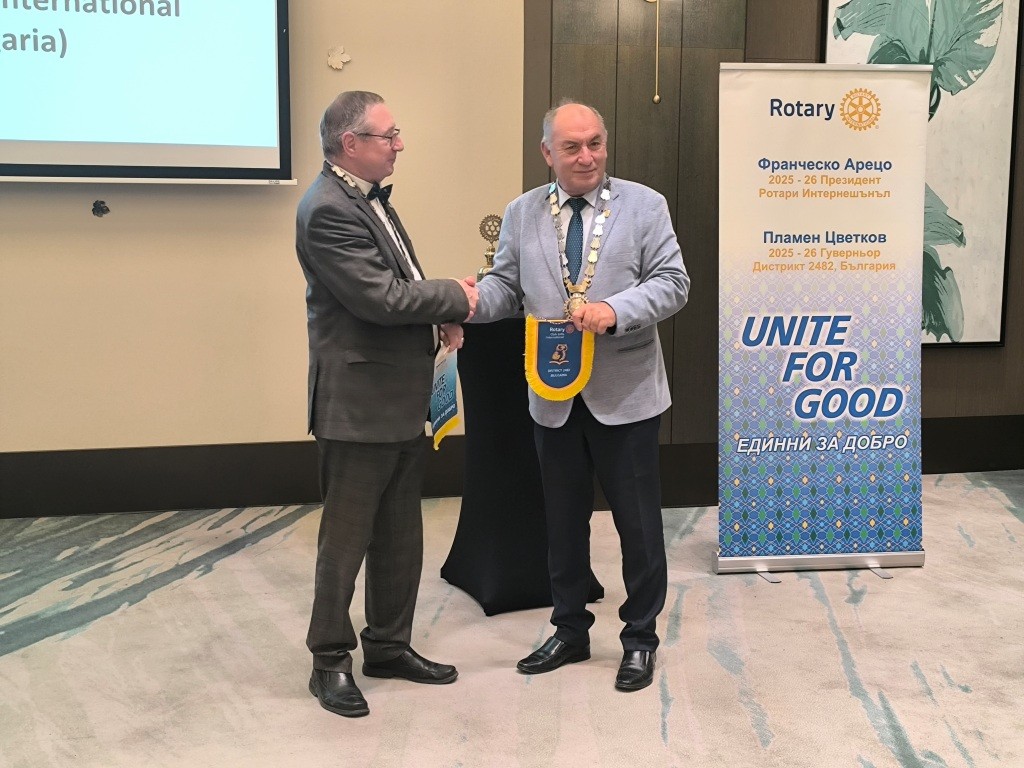 По време на срещата дистрикт гуверньорът връчи на президента на клуба отличието Пол Харис Фелоу – признание за личен принос и отдаденост към ценностите на Ротари.