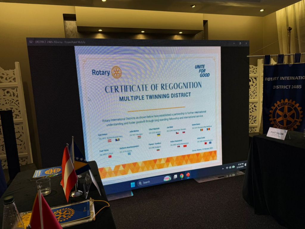 На 14 февруари 2026 г. в Дуръс, Албания, девет европейски дистрикта застанаха рамо до рамо и подредиха обща визия за бъдещи международни проекти. Дистрикт 2482, представляван от Дистрикт гуверньора Пламен Цветков, подписа Сертификат за мултидистриктно сътрудничество – документ, който поставя основа за дългосрочно партньорство и координирани инициативи.Това беше среща с ясна посока и силно чувство за единство. Тежките речи бяха излишни. Всички присъстващи дойдоха с еднакво разбиране: когато работим заедно, мащабът на доброто расте. Подписването на Сертификата е заявка за общи инициативи и координирани действия, които да носят устойчиви резултати – и да превръщат добрите идеи в реални решения за хората.