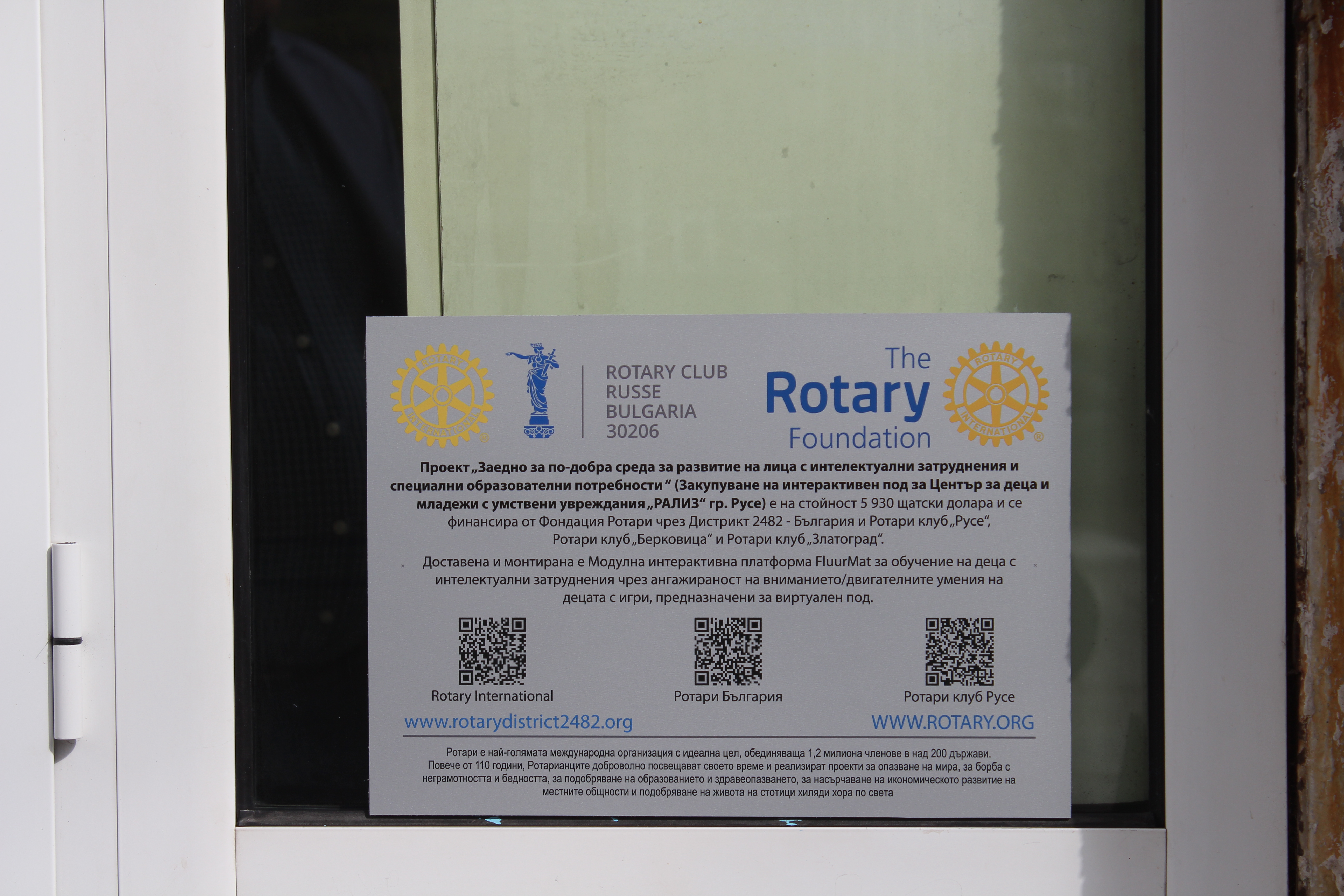 Днес Ротари клуб Русе официално достави и въведе в експлоатация интерактивен под FluurMat в Дневен център „РАЛИЗ“. Инициативата е насочена към подобряване на учебната и терапевтична среда за деца и младежи с интелектуални затруднения и аутистични прояви.